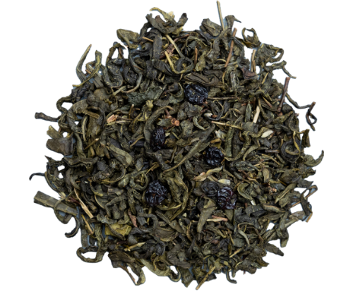 High-quality Ceylon green tea leaves blended with green tea leaves from another region with the addition of blackcurrant, lavender and natural blackcurrant and lavender aroma.